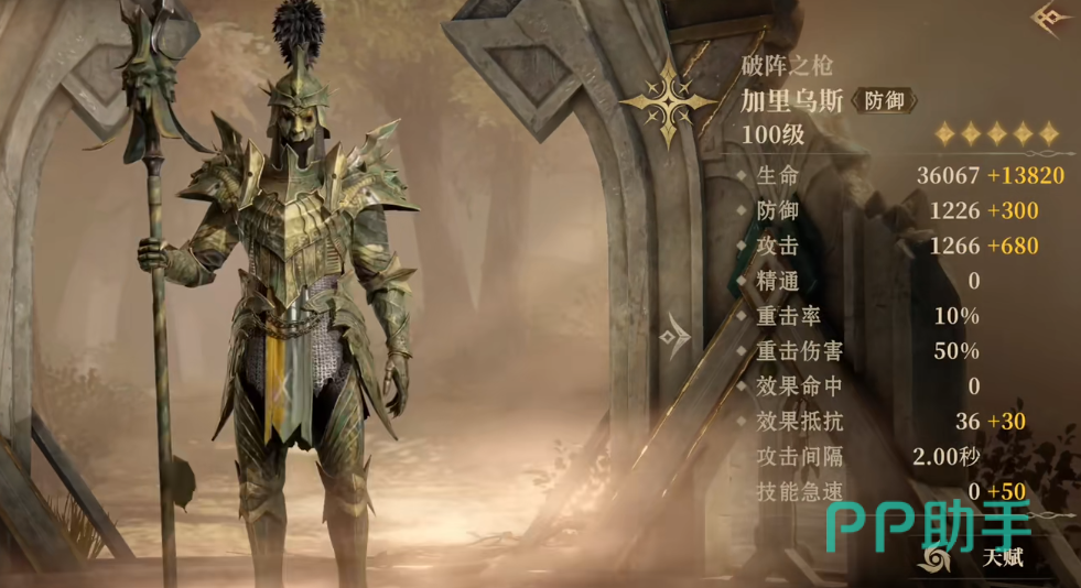 加里乌斯,光枪光骷髅,定位是前排坦克,主要起到承伤的作用,还有一手治疗,光枪也是PVE和PVP的全场景适用。套装用先祖套,属性防御堆到4000+,血量80W+,大多场合中需要堆一些豁免属性。光电体系缺核的情况下可选。