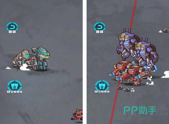 虽然这款只是简单的2d益智闯关类型的游戏,不过在内容上还是非常值得大家体验的,通过虚拟摇杆的方式可控制里面的变形机甲战士展开移动或者是攻击,面对比自己等级高的敌人时,你要使用躲避这样的技能。但如果与自己的等级相差不多的情况下,你可通过及时对抗的方式完成升级效果。击败的敌人越多,你获得的奖励也会越丰富。