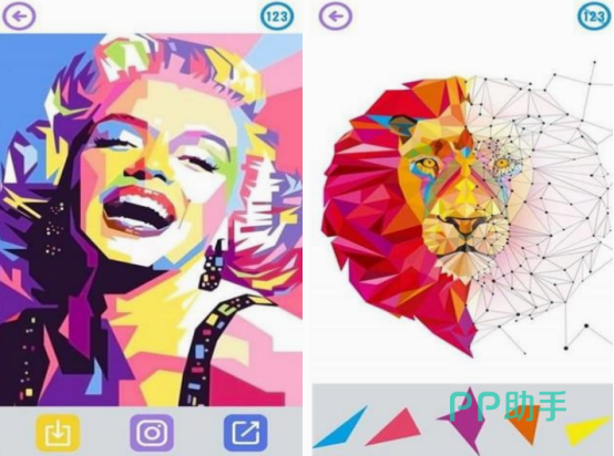 这款值得大家下载的,它就是满足需求的,既好玩又有趣。更是适合每个人体验的免费游戏,在压力大的时候利用这样的,让你置身于丰富的色彩以及美丽的图画中,同时也会给大家满满的艺术氛围。对于孩子来说,既能通过游戏认识色彩,也能帮助练习数字特色玩法非常的丰富。拖动多边形放在正确的区域以后,就能看到正确的图片样子。