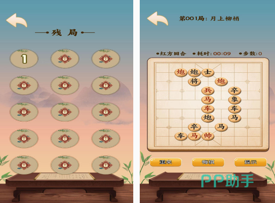 这款可帮助提升棋力的游戏中涵盖诸多的残局,在体验的时候可根据所设置的布局情况展开象棋模式,支持悔棋以及重来,如果实在不知道该怎么办的情况下,还有提示功能。相对于普通的象棋游戏,这款主要是以残局玩法为主的。通过收录的上千残局,让您与里面的游戏玩家展开挑战,非常的适合对残局感兴趣的玩家。