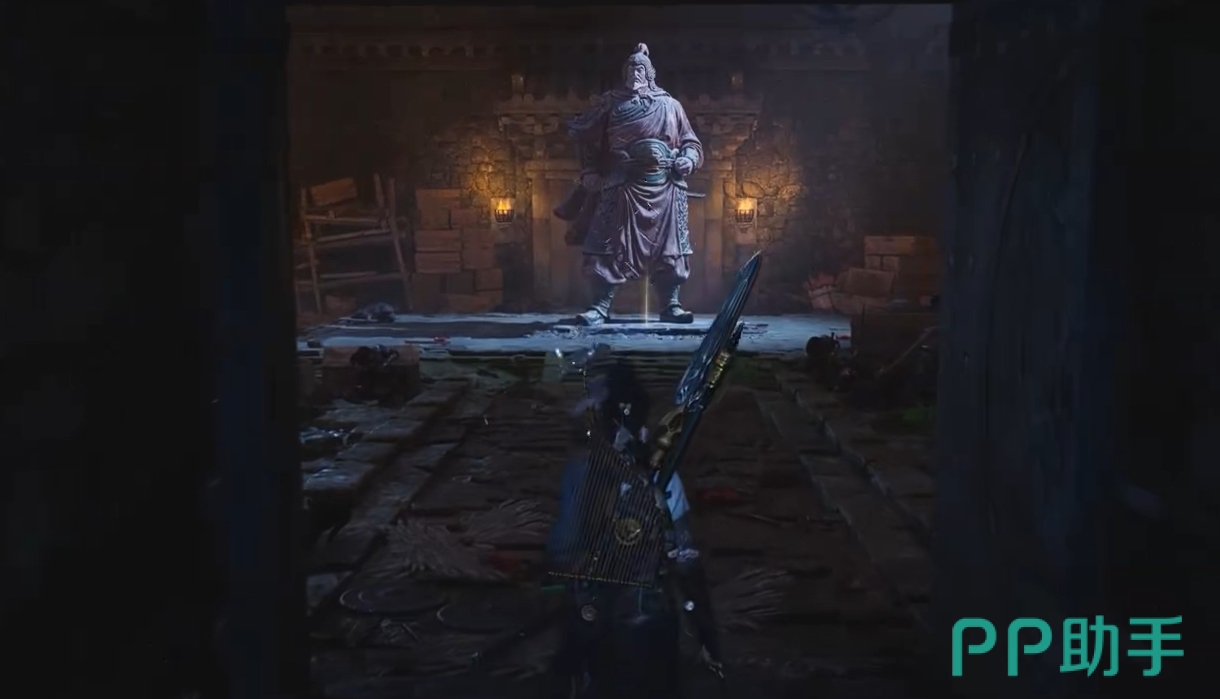 使用千斤坠让角色砸在机关上,便能开启密道,一路往下走就可在兵卒身上拿到线索三,继续向前走会看到一座有着将军雕像的房间。按线索摆出燕云誓后,雕像会自动转起,然后只要将墙上的“漂”、“百”、“移”三个字推进去,就能开启继续前进的大门。