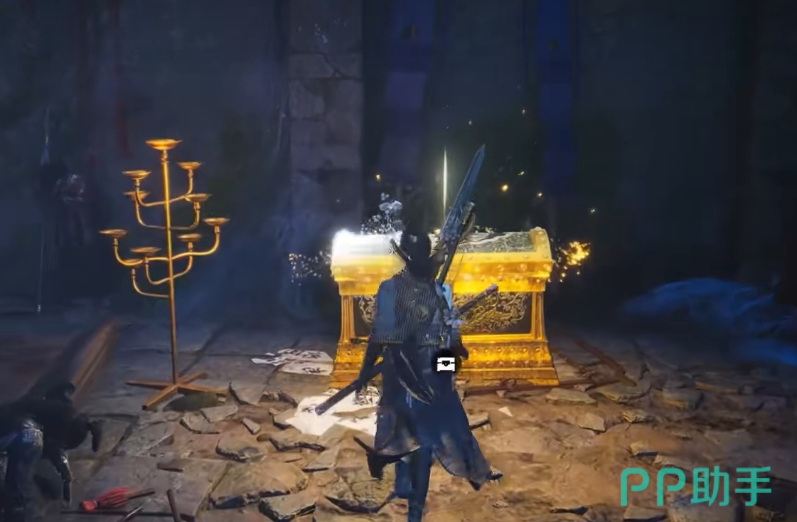 继续前行来跑瀑布处后,穿过瀑布开启机关,就能打开瀑布另一边的大门,推开大门后就来到了真正的密室所在地,玩家所想学习的凌虚一指就在密室里的一个金色宝箱里,与之交互后就能学会。此后,玩家只需走到宝箱旁边有红色纹路的墙上并交互,就能完成山河如故这个任务。