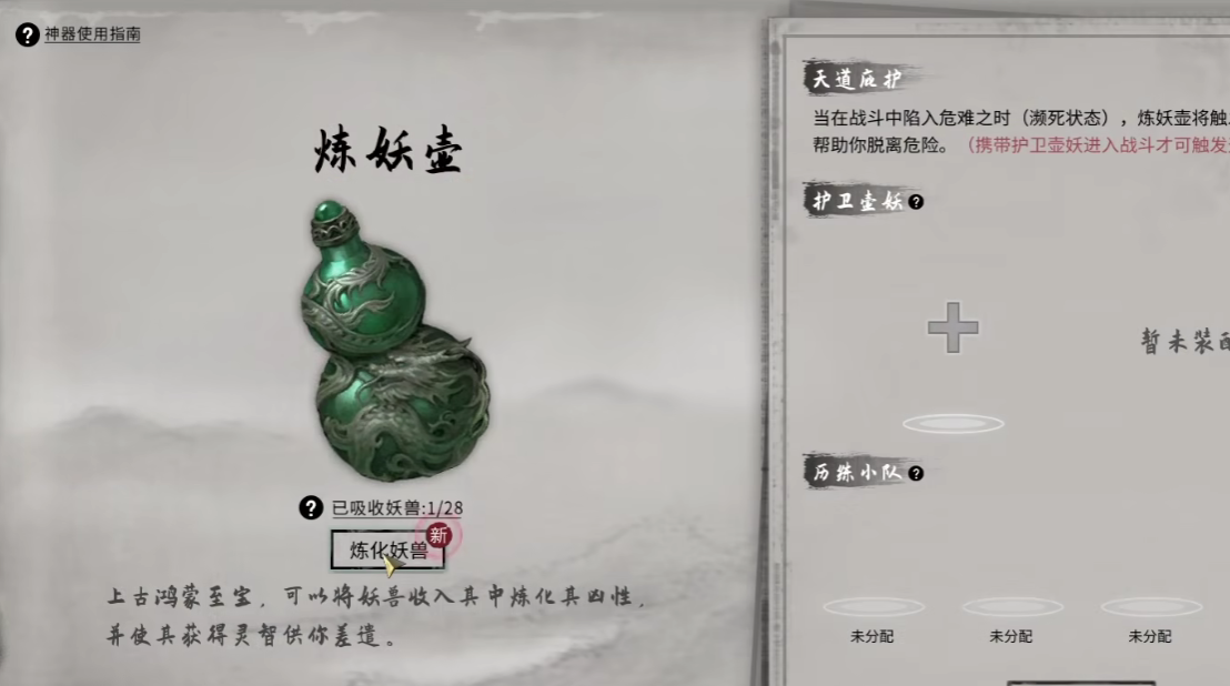 炼妖壶的整体玩法实际上属于召唤系,玩家在大世界内捕捉的妖物,不仅可以直接炼成丹药,还能够驯服成为自己的仙兽,不止如此,在使用炼妖壶时,玩家可以直接无视掉敌人最后20%的血量,直接张开炼妖壶,将其收入囊中,这无疑减轻了玩家的战斗压力,相比于昆仑镜和太极盘,炼妖壶的操作难度就会大大降低。