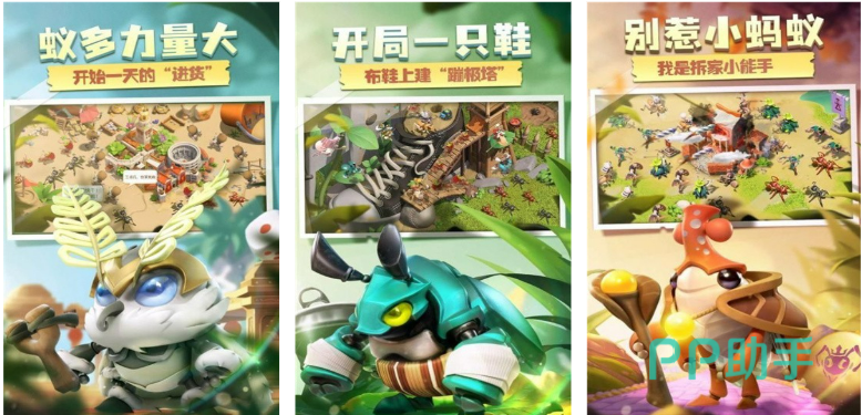 相较于前四款游戏来说这款要塞游戏的题材就显得比较放松和欢乐可爱一些,它是以蚂蚁王国为题材,每天清晨,小蚂蚁们会起床开始“打工”,去合力搬各种工具来打造属于自己的蚂蚁小窝,正所谓“蚁”多力量大!如果他们一不小心发现了一只大布鞋的话,他们还会在上面搭楼梯、做房子,当然,他们也会遇见很多不同的敌人。在蚂蚁家族当中他们有不同属性和特异功能的蚂蚁战士们,他们将会与这些敌人开启一场实时战斗。