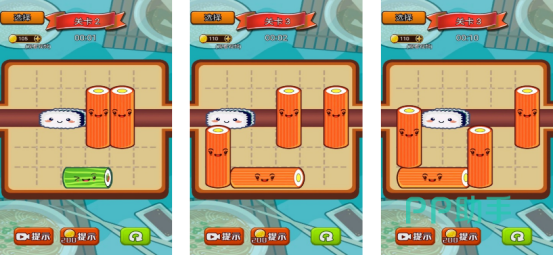 作为一款休闲小游戏,这款游戏里以寿司为主题以及角色形象,打造了一款需要过五关斩六将的游戏模式,这款游戏的难度会随着关卡的增加而成倍增长。在游戏里遇到难度时,玩家可以通过以往关卡获得的太阳,来购买提示的次数,系统会给出提示该如何操作,或者在太阳数量不足的情况下,也可以通过观看视频来进行提示。