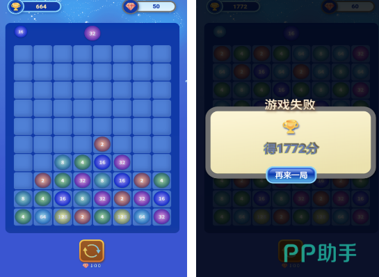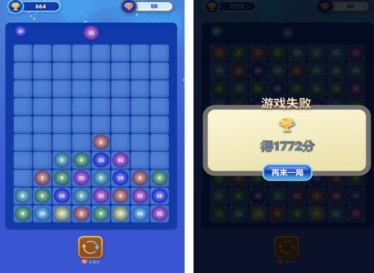 当你下载了这款休闲趣味性的小游戏以后,大家可看到相对于单纯的2048以简单的数字为主,这款还融入了消除的设计背景风格,以五颜六色的球球为主,每个球球上都会显示不同的颜色,你只要正确的点击不断合成,就能获得相应的分数。看上去这款游戏的玩法特别简单,但如果没有掌握技巧,也会面临失败的结局,你要在玩的时候很好的观察掌握技巧。