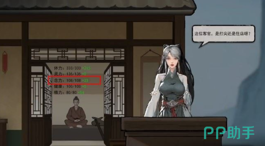 如果大家在游戏的过程中发现自己的念力值下降了,也可以前往客栈中恢复,在与npc对话之后会出现一个投宿的选项,当玩家们投宿之后,念力即可得到恢复,但需要消耗一定的灵石。或者你也可以前往宗门中的疗伤院进行恢复,这个方式虽然不需要支付灵石,但是需要消耗一些宗门贡献度。