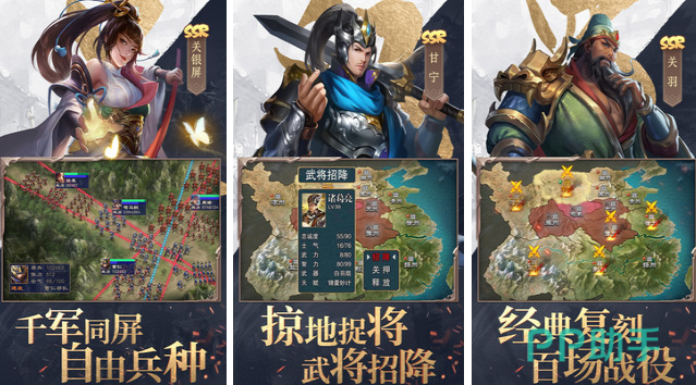 深度刻画三国历史风貌与地理布局,精心打造战略推演沙盘。在此广阔舞台上,玩家可自由选择众多三国名将,巧妙组合队伍,挖掘每位武将的潜能。沙盘之上,侦察敌情、争夺资源、发起攻势,每一步决策都关乎胜负。游戏既忠实还原历史,又融入创新元素,使玩家能够沉浸于纯粹而丰富的三国国战中。
