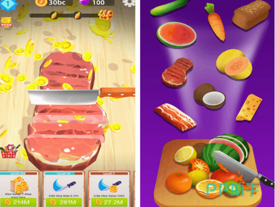 不管生活中有任何的压力,你都可通过切水果或者是切各种食材的游戏,来帮助大家释放。这款休闲趣味性的游戏中,你也能通过特别简单的方式切除里面的食物,包括五花肉甚至是巧克力。如果你很喜欢切水果的话,在里面也有丰富的种类水果在按板子上,拿着刀具就能对它们切片,还能在切的过程中获得丰厚的金币奖励。