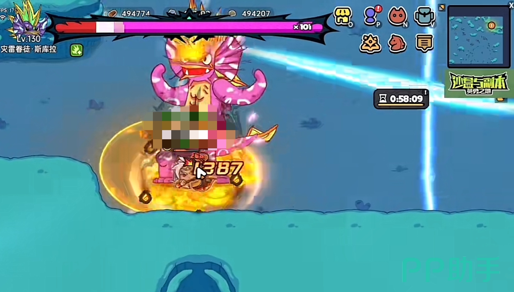 当然也要躲避一下雷龙的技能,除了一直在屏幕内横扫的电线之外其他的也都有重伤效果,扔飞镖的时候可以向右移动一下来躲避,过来之后就会立马释放电网,我们需要在即将出发的时候到门口躲一下,电网结束我们就可以换火斧一直转着打伤害了。里面的一层是4000点固定伤害,门口的也就大概800~1000左右,姜饼人宠物的领域和魔龙刀尽可能的和雷龙的身体重叠,这样能将伤害最大化。
