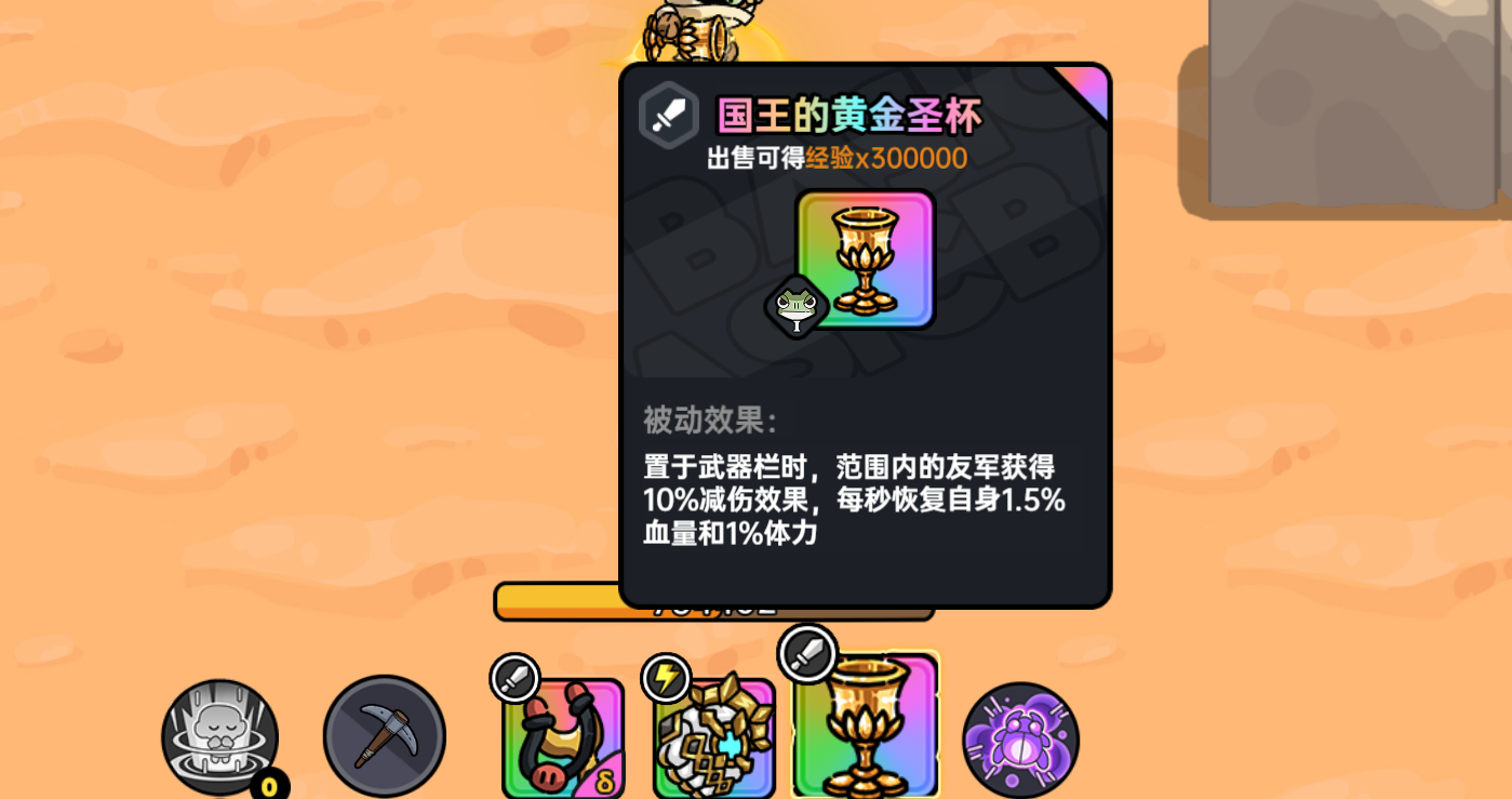 雷鸣之握为第二个副武器,第一个可以携带鼹鼠弹弓,技能冷却短适合主输出,最后带圣杯持续恢复血量和体力。类似于这种功能性的武器还有很多,美杜莎之瞳可以对目标造成石化效果并且附带持续的中毒,逐神冰锥也是比较笨重的武器,但通过蓄力能够眩晕目标并且附带冰冻效果;而偏偏指虎伤害并不算特别出色,而且任何控制效果也没有,后续可以通过击杀小镇的巨人boss途径获取,不要操作失误卖掉换取经验即可。