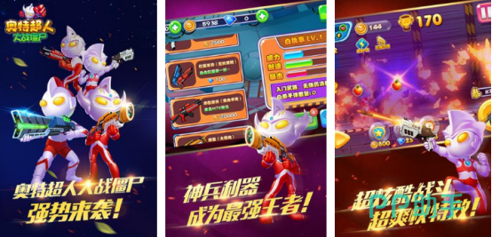 采用的是2d的画面进行设计,在这里您可以看到很多经典的角色,从整体的画风上来看非常可爱又q萌,讲述的就是僵尸横行霸道的出现在了世界当中,并且对于人类以及对于整个世界都造成了较大的伤害,而玩家将要扮演的是奥特超人的角色,需要守卫整个世界的和平,因此要利用各种武器对抗僵尸。其中所包含的关卡内容特别多,除了简单的怪兽以外,还融入了强大的大boss。
