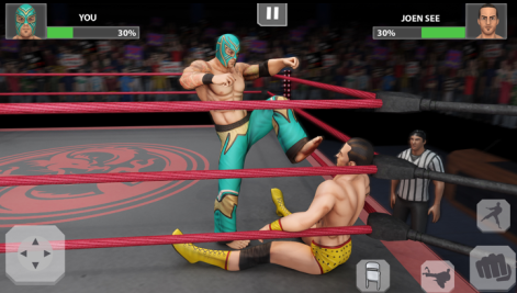 摔跤手来自于世界各地,他们通过随机的方式出现在不同的摔跤PK当中。玩家控制摔跤手的操作简单,右下角有关于摔跤手的手部以及腿部等多个动作按钮,玩家根据需要摔倒的对手的情况选择合适的出击动作,有机会参加世界级的摔跤比赛。