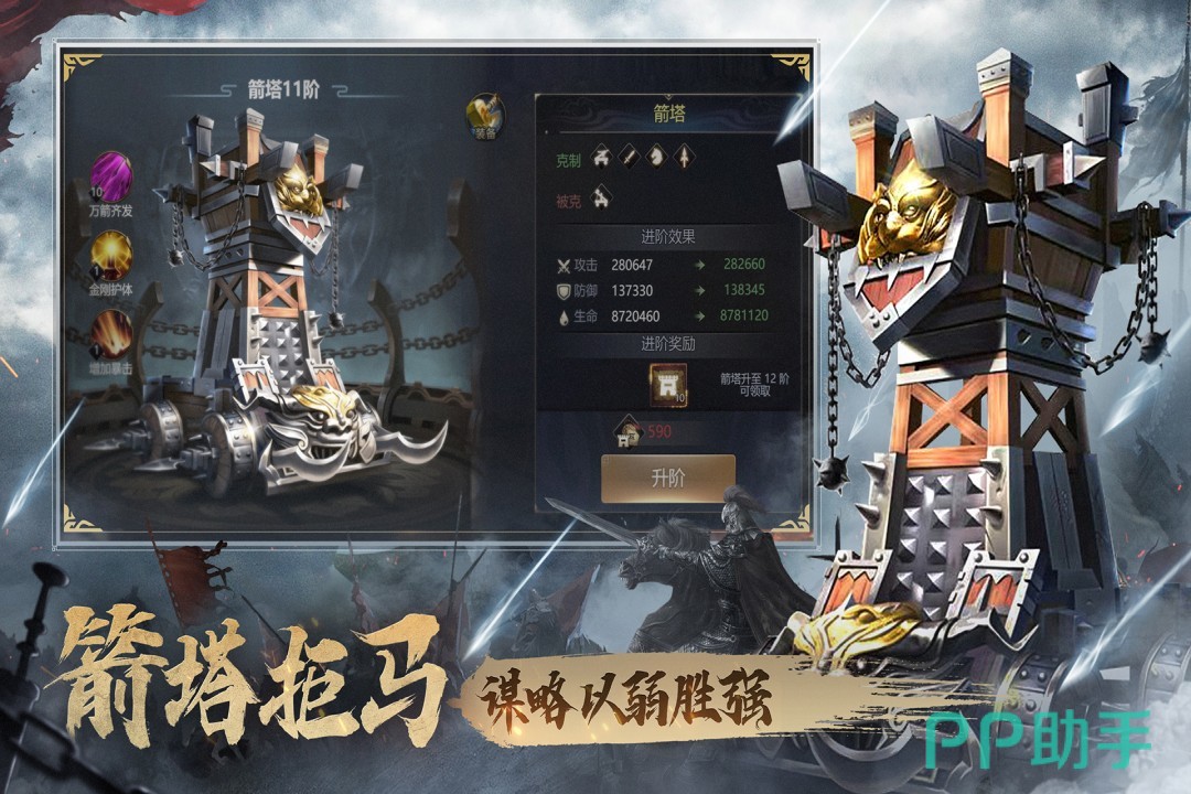 这款是大家都很喜欢的三国题材的战略游戏。非常完美地还原了三国时代那种战乱的氛围,玩家不但可以收集各大经典武将,比如说诸葛亮、周瑜等,而且还可以培养他们,让他们带领你的军队去作战!同时还有许多的单位玩家是可以建造的,你可以将箭塔不断升阶,让自己拥有更强的攻城能力。你也来试着经营城池,问鼎九州吧!