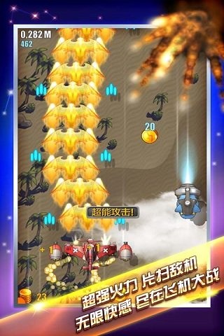 《单机飞机大战》你只需一根手指就能让你的飞机在空中撒欢般的飞行跑动,每次射击敌人你都能够获得对应的金币和积分,游戏所构建的画面清新自然且不失美感,而且又融入了能够瞬间让玩家战斗激情高涨的弹幕射击玩法,而且所呈现的射击特效更加能够令你惊讶不已,边战斗先边可以用无处不在的资源去强化自己的飞机。