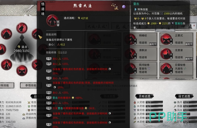 除了针对特定流派的词条,《鬼谷八荒》还有许多通用词条,适用于不同情况与战斗需求。例如,“脚底抹油”是一个极为有趣而实用的词条,在需要频繁逃跑的场景中,它能确保100%逃跑成功,为玩家提供宝贵的生存机会。而“通天之眼”则为喜欢与其他修仙者切磋的玩家提供了额外的技能获取途径,20%的概率习得对手技能的设计不仅增加了玩法的随机性,也为玩家的技能池扩展提供了可能性。