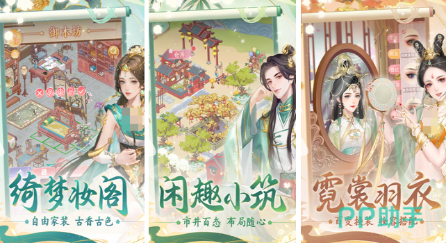跟随女主角的脚步,深入剧情揭开秘宝谜团,体验成长之路,感悟人生中的各种情感,逐步揭开层层迷雾。游戏中设有府邸内外两大场景,供你自由探索与移动,你可随心布置家具,打造属于自己的温馨寝宫,邀请友人做客,品味别样的繁华人生。更有高度自由的捏脸系统,多款华美服饰任你挑选。
