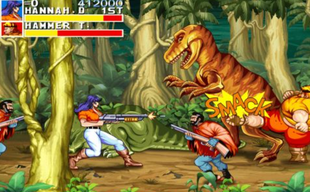 这款动作闯关游戏在街机厅中的地位是有目共睹的,许多80后小时候的零花钱都用在了这款街机游戏上,四个主要角色属性不同还可以拾取各种兵器进行对战,与反派BOSS和各种恐龙战斗的过程惊险刺激,欧美英雄主义在这款街机闯关游戏中诠释的淋漓尽致,打击反馈较为真实与机动性很强的操作也是相辅相成。