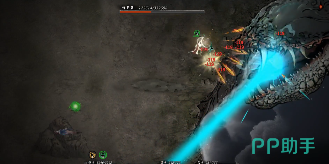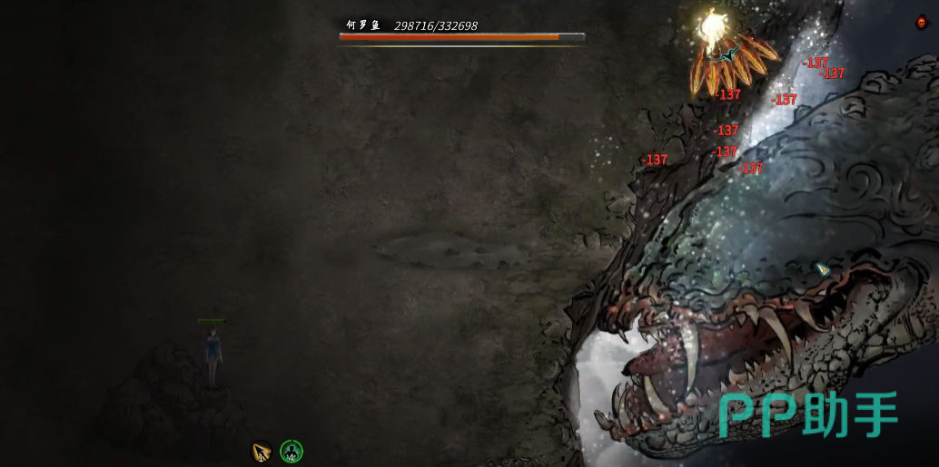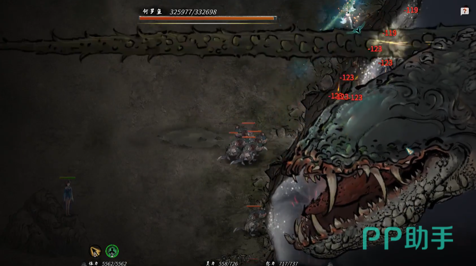 在第一次对战何罗鱼时,重点就是要搞清楚它得到攻击方式,也就是技能机制,其实并不难,首先需要找到一个安全的输出点,就是在它的触手附近,那边输出是比较安全的,蹲在哪里打触手,基本也不会吃到伤害;还有个重点就是,一开始不要着急去放除了武技之外的技能。