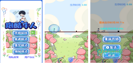 卡通的画面,还有人们非常喜欢的熊大形态,看起来憨态可掬。清爽的画面以及简单的操作方式,在开始之后玩家只要通过点触屏幕的方式就能顺利到达终点,熊大作为此家作当中的主人公需要不断向前奔跑,但是也会遇到众多障碍物,当遇到障碍物时,需要按住屏幕并松开屏幕的方式就能跳跃。