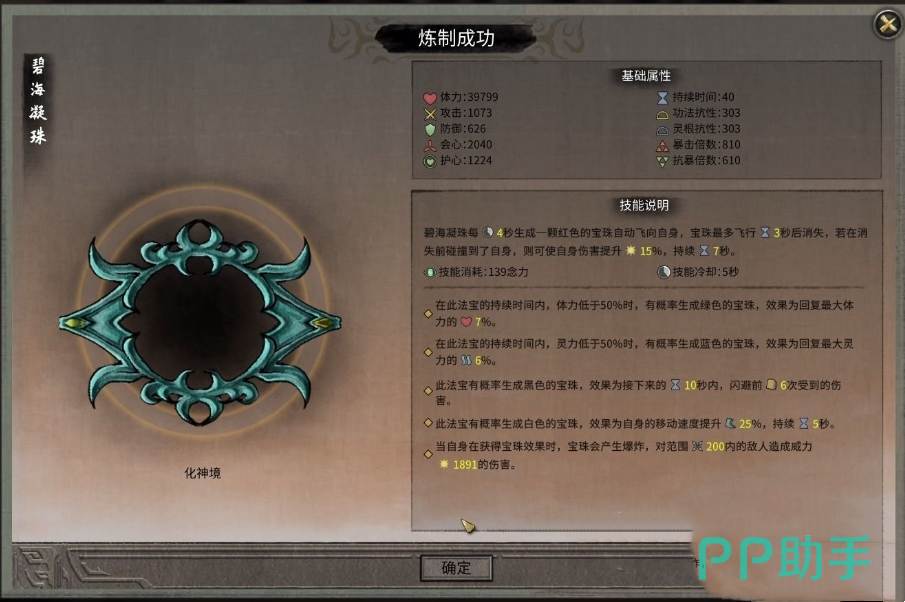 碧海凝珠被誉为鬼谷八荒中最顶尖的辅助型输出法宝之一,以其卓越的增伤效果而闻名。它的核心技能每隔4秒便会生成一颗红色宝珠,宝珠会自动飞向玩家,若在3秒内成功碰撞到角色,则会触发15%的伤害提升效果,持续7秒。这样的设计不仅简单直接,更能在高频率战斗中保持稳定输出提升。碧海凝珠的强大在于它适用于任何输出型流派。