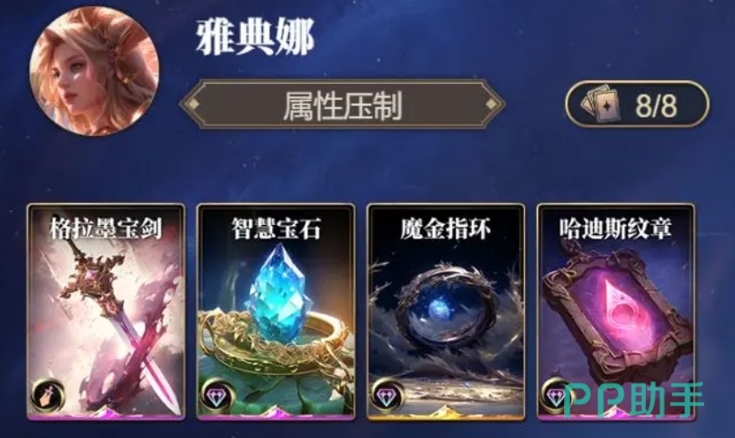 当对手的属性被削弱到一定程度时,潘多拉魔盒就成为了最关键的一个卡,而且为了提升自身的智力属性,大家还可以携带智慧宝石和三重神力这两张卡片,智慧宝石可以直接增加智力属性,而三重神力则能全方位提升两点三维的属性,这样的配置不仅能增强雅典娜的生存能力,还能使她在战斗中的搭配更加有条理哦。