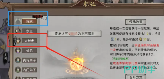 宗门的职位也会拥有多个不同的分类,宗门中最高的职位就是宗主拥有较高的权力。在宗门中重要的决策管理人物就是大长老还有长老,可以协助管理宗门事务。除此之外,还有真传弟子内门弟子以及外门弟子。玩家可以随意的选择一个。