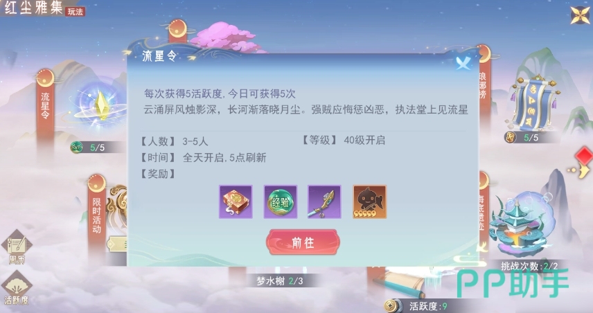 流星令和玄宗委托是孤月刀中的两种日常玩法,分别在40级和49级开启。流星令是组队日常任务,玩家需要与其他玩家组队完成一系列的挑战,每个任务完成后都会获得丰厚的奖励,包括大量装备和日常材料。其中玄宗委托则是单人日常任务,玩家需要完成8环任务,每环任务都有不同的挑战目标。完成全部8环任务后,玩家可以获得一次转盘奖励的机会,有机会直接获得10连抽,从而获得稀有装备和道具。