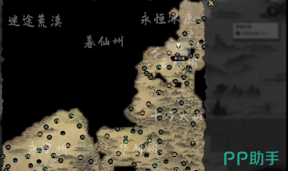 在游戏内总共有10种大陆,这其中就包含有天元、宇万洲、永恒边缘、慕仙洲、蚩尤州、迷途荒漠等等地区,玩家并未探索的地区会被迷雾笼罩,在迷雾笼罩的期间,玩家并不能够踏入对应位置。
