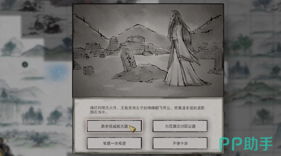 玩家届时有两种选择,第一个选择是协助NPC报仇雪恨,第二个选择是助长老祖修成功法,这两种选项实际上奖励机制是一致的,唯一有区别的地方是如若玩家选择帮助从们报仇雪恨,可以获得正义属性值的加点,而如若助长老祖的威能,则会取得邪恶属性值的增加。