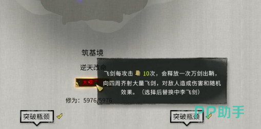 大李飞剑作为剑修当中一个非常不错的一个招式,玩家在筑基境当中就有机会获得。而大李飞剑是由小李飞剑突破而来,需要经过三步变化才能拥有。小李飞剑中李飞剑和大力飞剑都是由玩家的灵力凝成的一枚飞剑在玩家发动攻击时会自动攻击敌人,并且对对方造成不同威力的伤害。小李飞剑可造成2096的剑法伤害,这一等级下的飞剑整体的伤害是比较低的,而且在攻击频率上也是偏低。