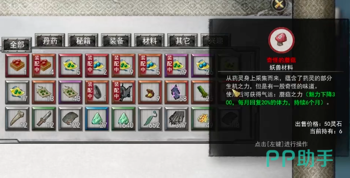 在游戏当中这种蘑菇是在突破境界时可以服下它,然后就可以获得前置的气运蘑灵仙力,在成功服下这个蘑菇之后,玩家在战斗过程如果进入到濒死状态,那么就会变身成为一只妖灵,并且回复30%的体力,该状态可以持续长达15秒之久,如果能够在后期升级为蘑灵神力,那么在血量回复和体力回复上会更高一些。而且在战斗过程当中,尤其是面对一些比较强大的boss能够进入到持久战争。除此之外,玩家还可以获得血魔大法通过该妖兽材料的加持,在境界突破上也可以将血魔大法发挥到极致,在战斗过程当中将这种蘑菇和血魔大法进行同时使用,则可以快速对敌方进行吸血。