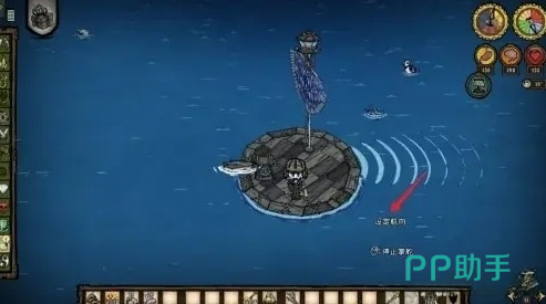 准备好船,玩家要掌舵,让船向月岛方位出航,在海上航行时,玩家应注意风频和潮洪的改变,合理调整船的方向和速率。为了更容易找到月岛,玩家能够多次使用地图,以保证船一直沿着正确路线前行。