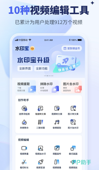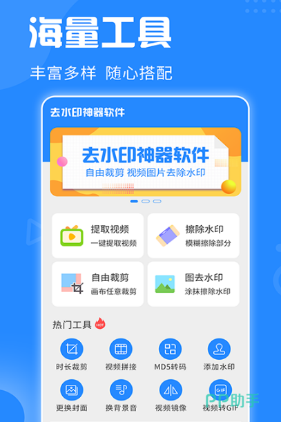 视频制作辅助工具,此应用的出现成为视频编辑的福音,海量工具满足视频编辑需求,包括提取水印擦除、图片水印、擦除以及拼接、录像、添加背景等等。各种工具应有尽有,让你在编辑视频时更加简单,即便从未学习过各种专业知识,也无需担心随心所欲打造出属于你的精彩片段,给原创视频加点。