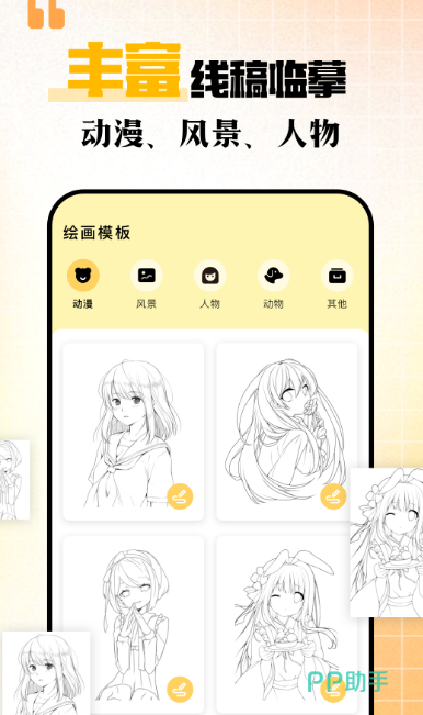 功能强大的绘画工具在这里可发挥属于自己的想象力,打开此应用之后,会发现在手机上也能如此畅快地完成绘画,无论是专业的绘画师还是零基础,小白都能利用本应用轻松愉快的创作,有适合孩子的绘画模式,还有适合小朋友的涂鸦。丰富的线稿可任意临摹,包括动漫、风景、人物等等,如果你是零基础,我们可直接打开详情页面,提供多种绘画教学课程。