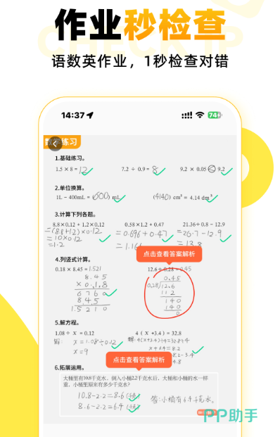 热度极高的口算app,可快速准确检查口算,支持小学阶段多种不同科目及题型,包含语文数学还有英语,帮助所有家长减轻学习负担。完成口算之后,通过拍照的方式快速一键检查,帮助所有孩子培养对文字的学习兴趣。其中涵盖超多丰富的内容以及各种不同的题型,通过多元化智能教育,帮助学生系统性高效性完成闭环。