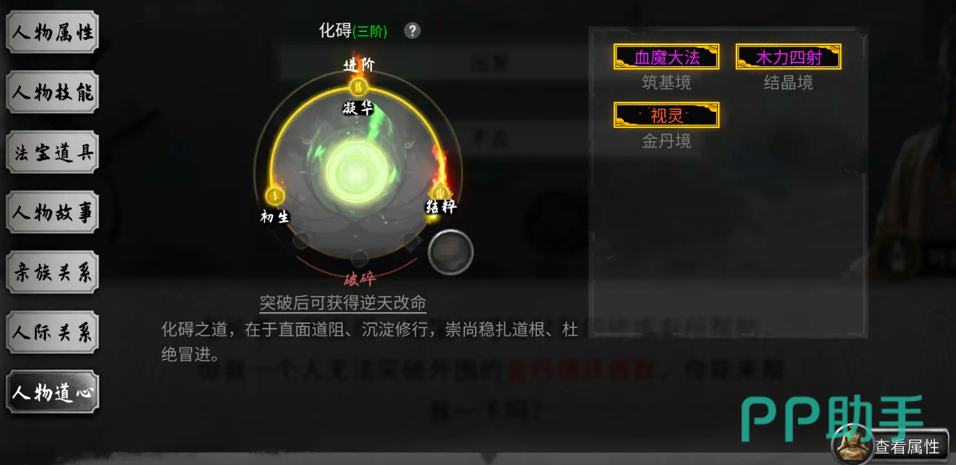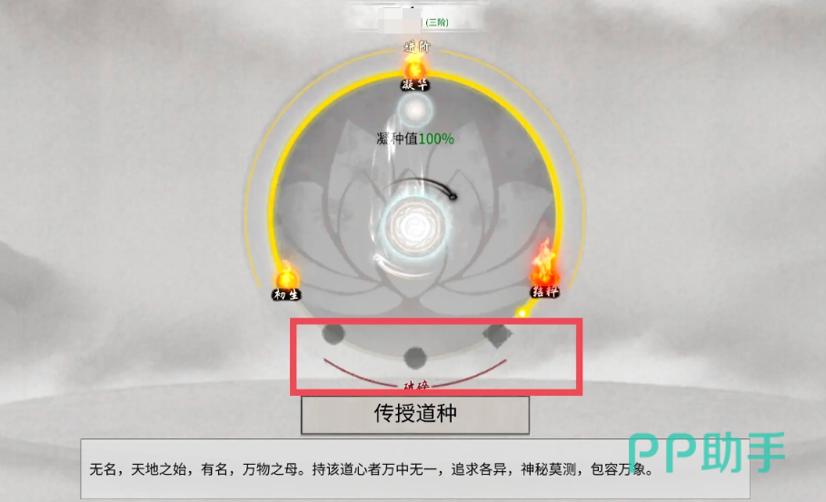 道心凝结完成后,玩家就可以在师父的指引下,将一些缺乏道心的NPC培养成未来的“英杰”,即潜在的天之骄子,游戏里简称是“天骄”。激活突破界面时,会在角色头像附近看到一朵荷花。只要这位NPC接受玩家传递的道之种子,对方就能迈入英杰的行列。