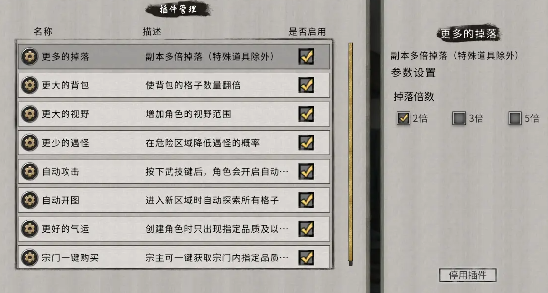 关于鬼谷八荒物品修改方法就给大家介绍到这里了,修改方法并不麻烦,只需选择存档长按就可以查看更多的选项,其中有插件适用,可以设置启用或者停用插件,利用插件就可以修改物品了。