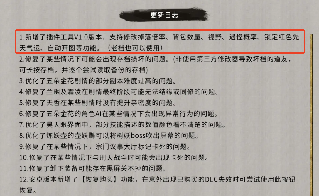 在PC版本中修改物品是很容易的,更是有着许多相关功能的工具,移动端的话因为目前游戏刚出,还没有太多单位为其制作的工具,不过为了方便大家体验,官方也是在最近更新了插件,增添了许多便利功能。