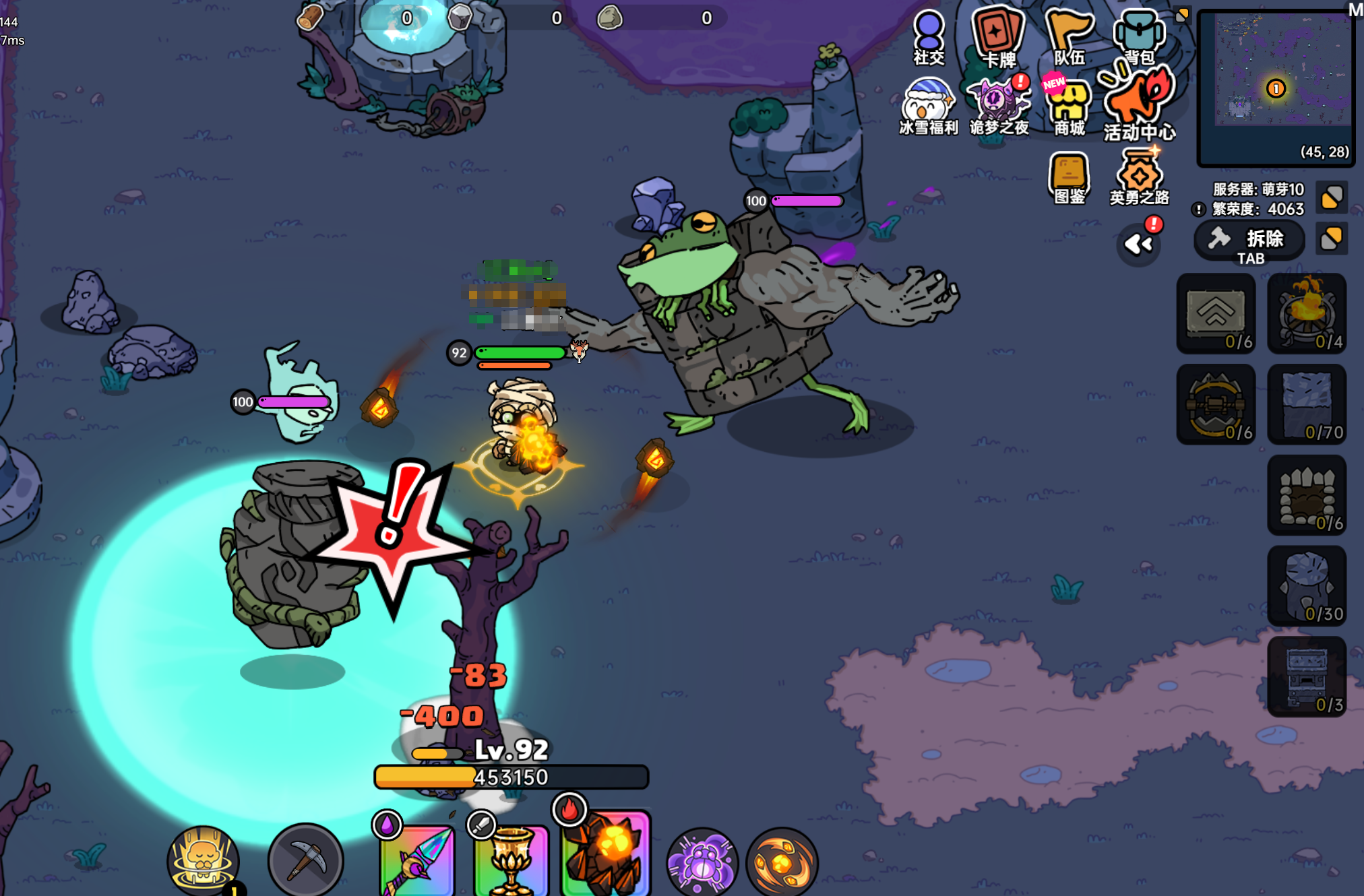 这些勇士的外形和变异的青蛙差不多,它们的攻击招式一共分为三种,第一种就是向玩家吐出毒液进行攻击,只是直线路径并没有追踪效果;第二种则是像玩家位置伸长舌头,如果没有走位被命中会有两秒的晕眩效果;第三种则是伸出两个爪子是向前方区域挠一下,总的来说非常好打。