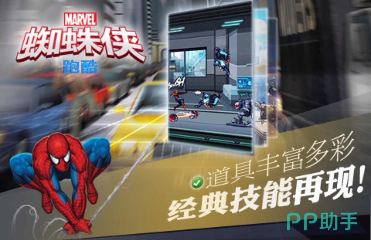 玩家在游戏中要变身为蜘蛛侠来跑酷和击败前来的坏人。玩家可以使用蛛丝这样的技能来披荆斩棘。而且蜘蛛侠的跑酷动作设计的也很华丽。有意思的是游戏中的跑酷地图都还原了蜘蛛侠漫画里的经典场景。而其中的任务便是拯救你的玛丽·简。期间的蜘蛛侠跑酷手感也是独一无二的。