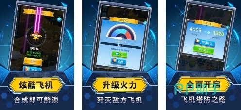 在游戏中,玩家必须通过简单的合成升级方式,逐步将基本飞机提高到更强的型号,击败对手。除了传统的飞行射击游戏外,游戏还加入了大量塔防元素,能通过修建防御塔来抵御战斗机进攻,保护自己的基地。华美的作战效果,丰富的技能组合,及其简洁明了的操作界面,不论是喜爱飞行射击或是塔防手机游戏的玩家,都能在飞机和塔防中寻找自己的快乐。