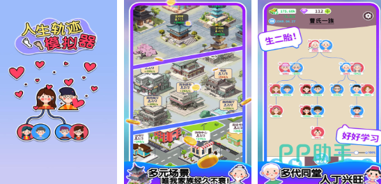 在卡通画风中,玩家解锁多元场景留下独特的人生轨迹。场景选择比较固定,玩家可以拥有家庭大院,成为某一个家族之中的独子,在后期的学校方面也会优先考虑私立学校。当学有所成后就可以进入家庭企业办公,玩家在而立之年时会进入到婚姻殿堂并且养育孩子,还有一些其他的重要人生轨迹哦。
