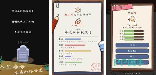 自由选择空间度最大,玩家从开始出生就可以决定性别年龄以及体重等基本属性。在后续选择上,玩家既可以跟随主流,完成上学打工程老板这一条主线,也可以通过随机按钮选择不同的道路进行成长,每一条选择会有两到三个不同答案。在墓地板块中,玩家甚至可以提前安排自己的身后事。