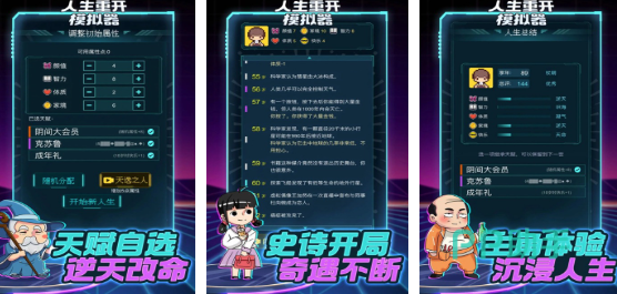 人生已经重开,玩家在开始选择不同的天赋完成逆天改命的操作。天赋类型比较独特,阴间大会员和成年礼等不同的天赋可以提前确定。在后续长达七十多年的人生选择中,科学家以及偶像等多个职业任玩家随机变换。除了随机分配外,玩家还可以成为天选之人哦。