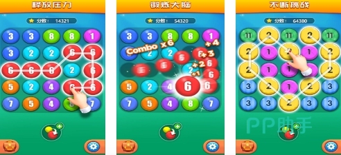 游戏玩法浅显易懂,适宜不同年龄段的玩家。玩家应该根据连线的方式清除同样数字的圆珠,一次消除的圆球越多,评分就越高。游戏里的每一关都会随机生成不同的圆珠布局,使每一次挑战都充满新鲜感。不仅考验玩家的反应速度,还规定玩家有一定的战略思想。此外,游戏还提供了多种方式及关卡,让玩家可以选择适合自己的难度进行挑战。