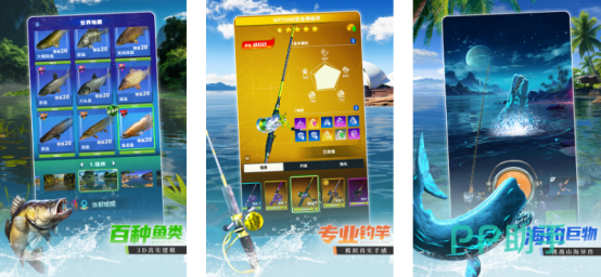 一款rpg元素的钓鱼模拟游戏,在游戏里,玩家可以根据模拟钓鱼的游戏模式,来开启自己的钓鱼冒险,在开始玩家可以通过尝试钓鱼而让自己的实力增强。并且还能够体验在室内,就可以体验各种钓鱼比赛以及户外活动,为了给玩家带来更多的体验,游戏里含有各地真实水域的具现化,其中就有中国,美国,澳大利亚等等,有湖泊河流,还有大洋大海,可供玩家尽情玩耍。