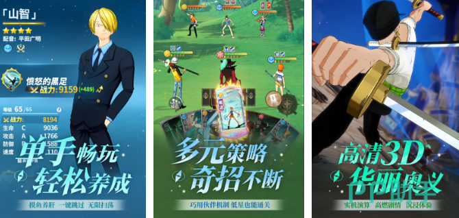 这款手游也是由航海王正版授权,大家将为自己的船队招募船员,大家一起组团出海冒险战斗。在这里大家可以体验和动漫人物一起的悠闲生活比如大家可以一起去出海钓鱼烹饪。还能经历各种刺激的战斗,比如顶上战争等等,使用大家的恶魔果实来战胜邪恶的黑胡子。