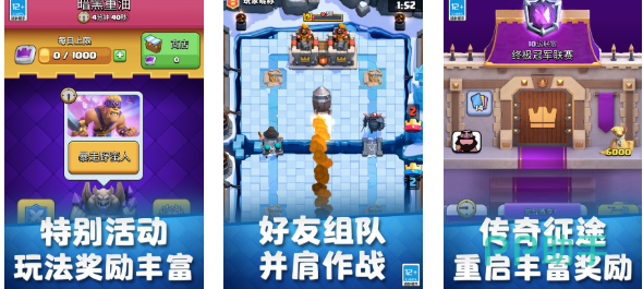 欢迎部落冲突游戏的粉丝进入全新的皇室竞技场开始冒险!本作算是部落冲突的姊妹篇而且具有着全新与众不同的塔防玩法,一如既往的萌版画面风格结合丰富的关卡活动极具耐玩性,部落冲突游戏中的各大兵种也会系数出现陪伴你一起挑战难关,这款1魔幻背景的策略塔防游戏还支持好友组队一起竞技,各种特色鲜明的模式和有趣活动都会给大家提供丰富的奖励,可选角色、防御塔和AOE战斗技能都十分多样,如果你也想玩一款有着部落冲突性质的塔防作品,那么下载部落冲突:皇室战争绝对是不错的选择。