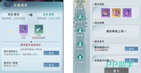 升级洞府可以提高自动吸纳灵气的速度,从而加快修炼进度,进行洞府升级需要大量九曲木,这些九曲木可以通过加入宗门并使用宗门贡献兑换。加入宗门不仅可以获得九曲木,还能参与宗门活动,获取更多资源。此外,提升道院地位也是提高洞府上限的重要途径。